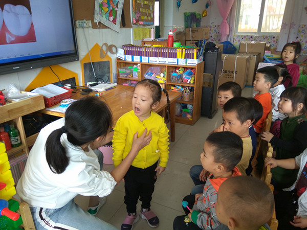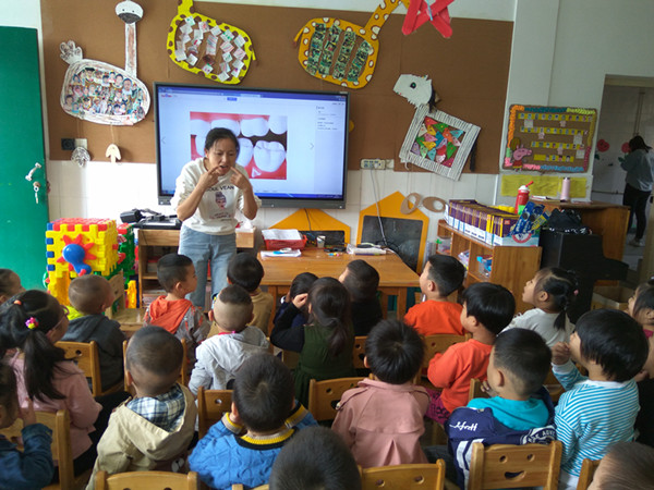 活动中,老师们根据幼儿的年龄特点,以幼儿喜爱的形式,向幼儿生动有趣地介绍了关于牙齿的小知识。例如,乳牙有多少颗?什么是蛀牙?如何科学地刷牙?吃那些东西对牙齿有好处?保护牙齿的方法等,进一步让孩子们懂得了更多关于口腔和牙齿的知识,掌握了正确的护牙方法,让他们从小就能养成爱牙、护牙的好习惯。