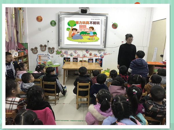 10月22日上午,田庄幼儿园大班组开展了以“暴力玩具不能玩”为主题的安全教育活动。