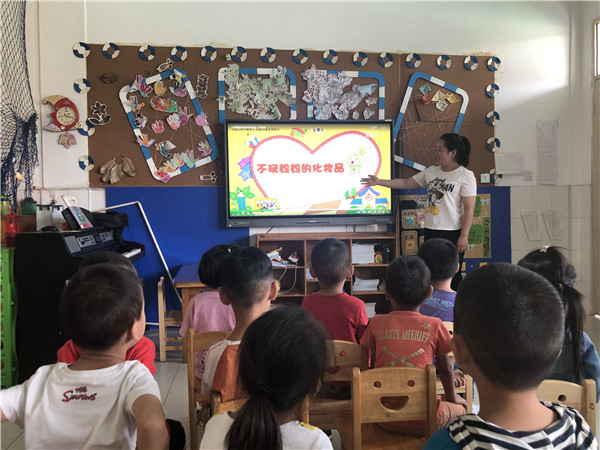 在活动中,老师通过故事和视频,让孩子们知道化妆品中含有化学成分,如果用了妈妈的化妆品,皮肤就会过敏,会痒,如果误食了还会中毒。通过故事,孩子们知道了什么是适合孩子的护肤品,怎么做到保护自己的皮肤,帮助孩子形成了正确的审美观。