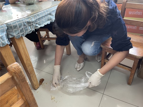 保健老师封存了可能引起中毒的食物,饮用水和午餐的留样食品,立即撤离了食堂正在工作的厨师,封闭了食堂冰箱、留样柜、大门。厨师在食堂门口外待命,行政人员保护食堂现场,禁止非工作人员进入。