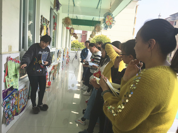 活动中,老师们带着欣赏与学习的心态走进每个班级、认真聆听本班老师对主题墙创设的讲解,就主题墙板块创设的意图、材料投放的层次性及幼儿兴趣点等展开了热烈的讨论,在家长、幼儿、教师共同参与布置的整个过程中,每个班都结合主题教学活动创设了具有本班特色的主题墙。各班的墙饰均能抓住幼儿年龄特点,体现师生共同参与的精神,采用多种表现形式,追求环境与幼儿的互动效应,并明确了每一个墙饰的教育价值。每一个主题墙的创设,不仅是课程内容、教学活动的反映,更是幼儿学习过程和结果的体现,充分体现了环境育人,环境塑人的理念。