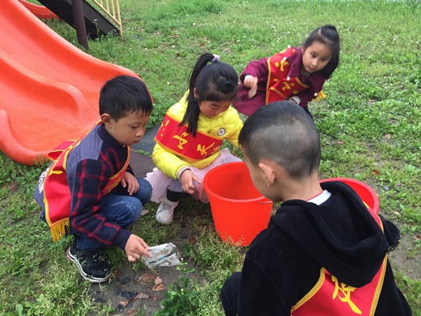 环保小卫士们主动在弯腰随手捡垃圾。孩子们体验到美化环境的快乐,在捡垃圾的过程中感受环卫工人的辛苦,从而培养幼儿养成爱护环境、讲究卫生,不乱扔垃圾的好习惯。