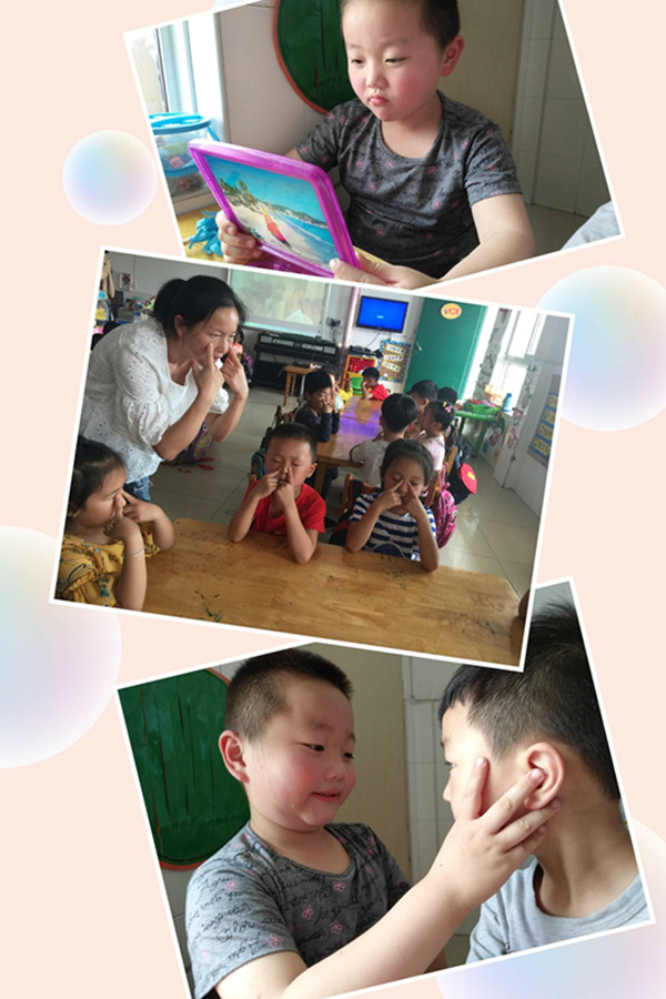 其次,根据幼儿的年龄特点各年级组开展了“丰富多彩”的“爱眼日”活动。小班通过视频讲解,让孩子们知道怎样保护眼睛。同时告诉小班幼儿不玩危险性玩具,如锋利的小刀、带子弹的手枪等,以免玩耍时不小心碰伤眼睛。中班通过开展一节“爱眼日”活动,让孩子知道眼睛的重要性,掌握正确的看书方法和姿势。大班的的孩子在老师的带领下,学做眼保健操,提高幼儿保护眼睛的意识,知道了在眼睛疲劳时如何缓解疲劳。