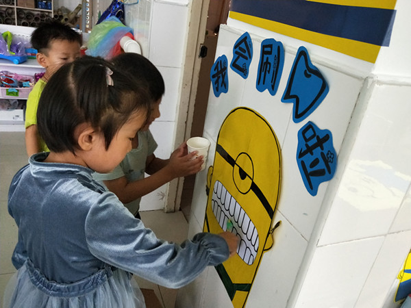 四是巧用区域游戏,学习正确的刷牙方法。在班级的生活区,布置刷牙的图片,让幼儿给小黄人刷牙。可操作性、互动性强的操作,让幼儿更能掌握的刷牙方法,从而养成良好的生活卫生习惯。