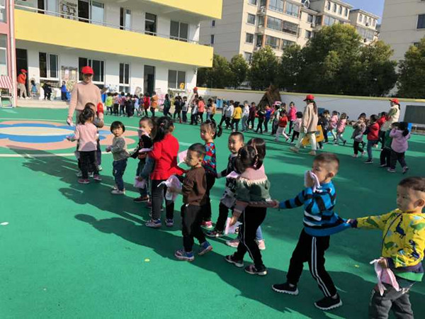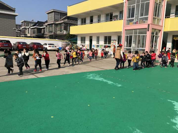 很快孩子们集中到操场安全地带整齐地按照制定好的位置蹲好,教师迅速地清点人数,并向园长汇报。整个疏散活动用了3分多钟。