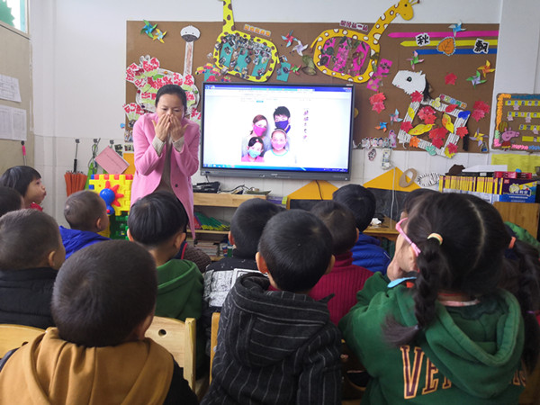 活动中,教师通过图片、课件进行讲解,引导幼儿认识雾霾,让孩子粗浅认识“雾霾”的来源及“雾霾”给我们生活带来的不利影响。教育幼儿在“雾霾”天气中如何自护,如:紧闭门窗,尽量减少外出,出门时要戴口罩,多吃新鲜蔬菜和水果,多喝水等。