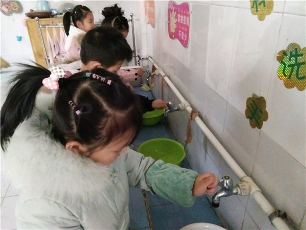 这是我们中班的小朋友,我们一起来洗洗小手,我们拿着脸盆和桶来装洗手的水,还有的小朋友拿着瓶子装水一点一点倒出来洗手,再将水用桶装着,一点一点地收集起来,想想,我们可以利用这些水来做什么呢?
