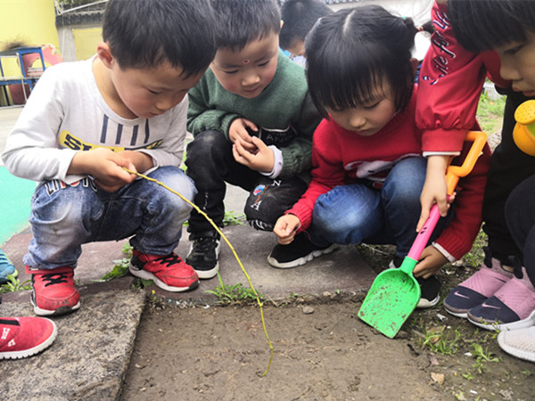 《指南》科学领域部分指出:“教师要善于发现和保护幼儿的好奇心,充分利用自然和实际生活机会,引导幼儿通过观察、比较、操作、实验等方法,学习发现问题、分析问题和解决问题。”4月25日早晨,田庄园小班的孩子在户外活动时发现了一条蚯蚓,孩子们非常好奇,围绕孩子的兴趣,一场关于探秘小蚯蚓的活动开始啦!
