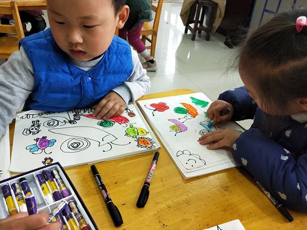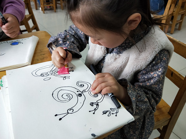 通过观察,孩子们知道了蜗牛的外形特征,于是孩子们便拿出他们的画笔通过自己稚嫩的双手描绘出蜗牛的样子。光是画蜗牛可还不够,孩子们还积极地画出蜗牛喜欢吃的食物,这样蜗牛就不会饿啦!